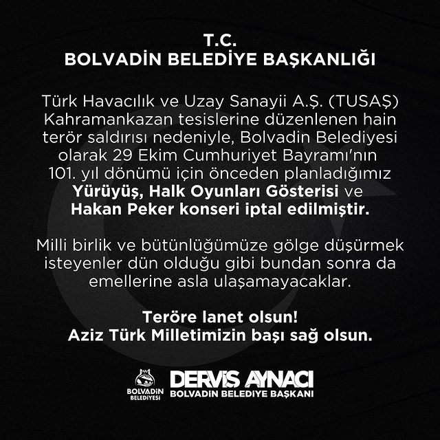 Cumhuriyet Savcısı Büyükmert İçin Veda29 Ekim Cumhuriyet Bayramı'nın 101. yıl dönümü etkinlikleri iptal edildi. Organizasyonun önceden planlanan programı, Yürüyüş, Halk Oyunları Gösterisi ve Hakan Peker konseri, belirli sebeplerden ötürü gerçekleştirilemeyecek.
